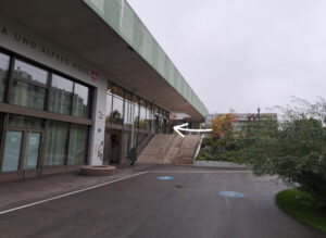 Der Haupteingang ist bis 18 Uhr geöffnet. Zu dieser Zeit müssen die Judoka über diesen Eingang (siehe Foto) in das Gebäude gehen. Ab 18 Uhr ist der Nebeneingang als Ein-und Ausgang zu benützen.